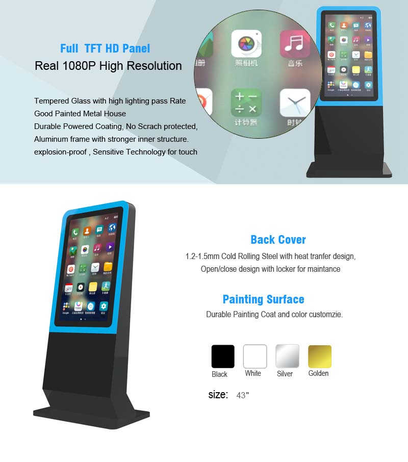 | LCD Panel | Name Type | 43'' HD LCD Digital Touch Kiosk |