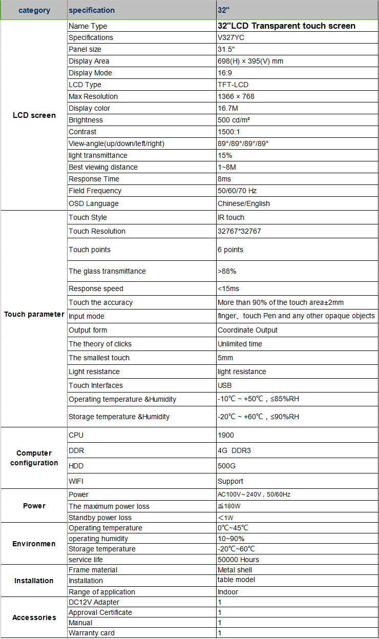• 32"LCD Transparent touch screen