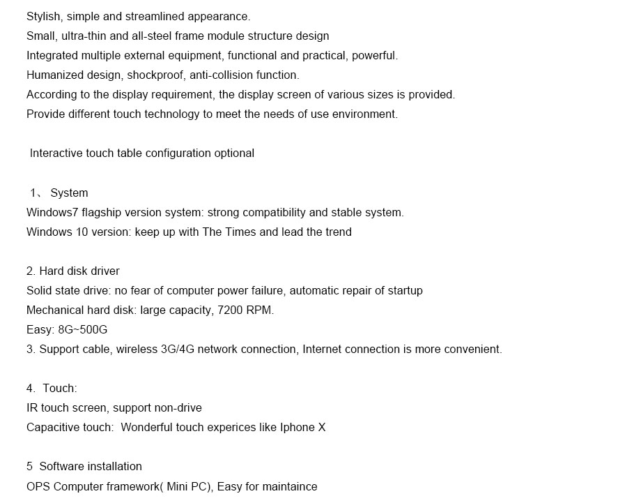| Accuracy of touch | More than 90% of the touch area ±2mm | |