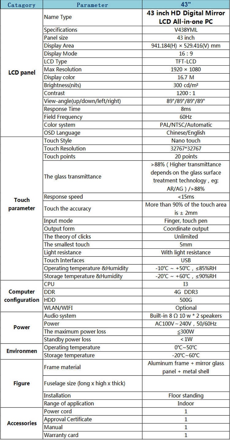 • 43 inch Floor-standing/Wall-mounted Mirror LCD All-in-one PC