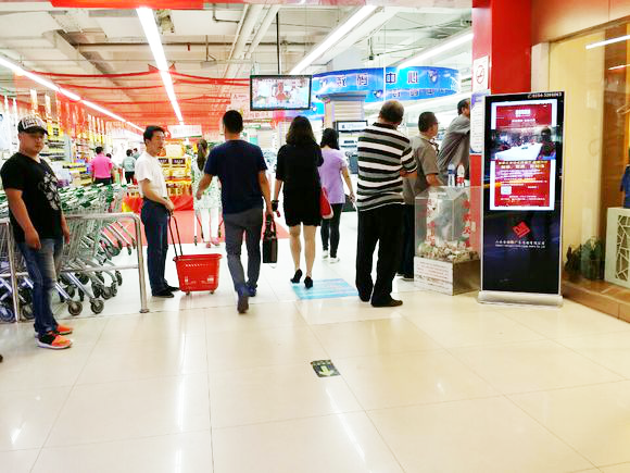 43 inch Floor standing type Iphone design Advertising player used at Huarun Supermarket.